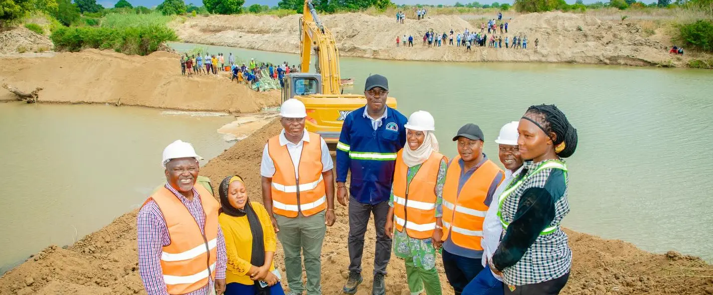 Waziri wa Maji, Mh. Jumaa Aweso akishirikiana na viongozi wa Bodi ya Bonde la Wami/Ruvu kusafisha mto ili kuruhusu maji kupita kwa urahisi ili kuingia kwenye mto Ruvu na kupunguza mgao wa maji kwa wakazi wa Pwani na Dar es Salaam