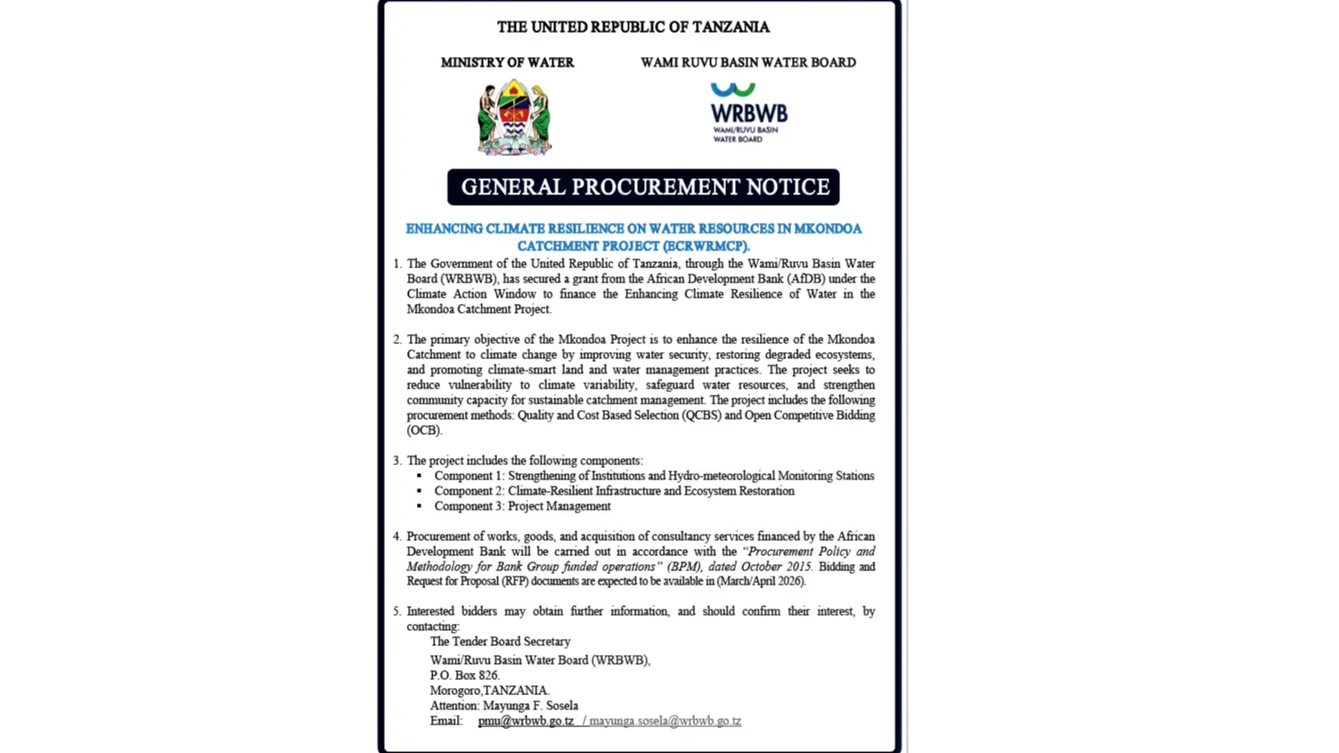Ndugu mdau wa rasilimali za maji, unakaribishwa sana kwenye tovuti ya ‘Bodi ya Maji ya Bonde la Wami-Ruvu’. Tovuti hii Soma Zaidi